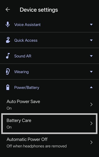 The Charging Case: The case itself does not have a "Battery Care" limit because research shows most people only need to charge the case once or twice a week