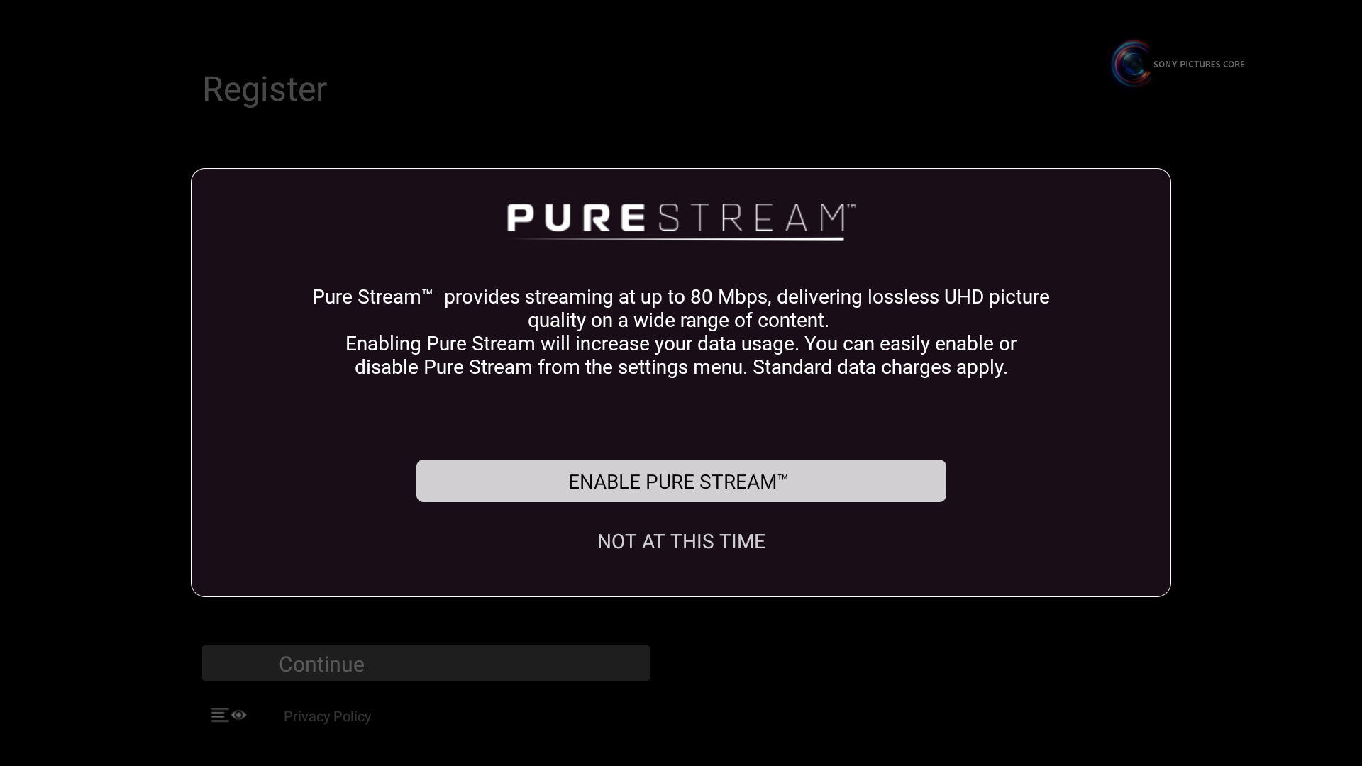 On the next screen, you’ll have the option to enable Pure Stream, which provides the highest streaming picture quality but requires more data.1