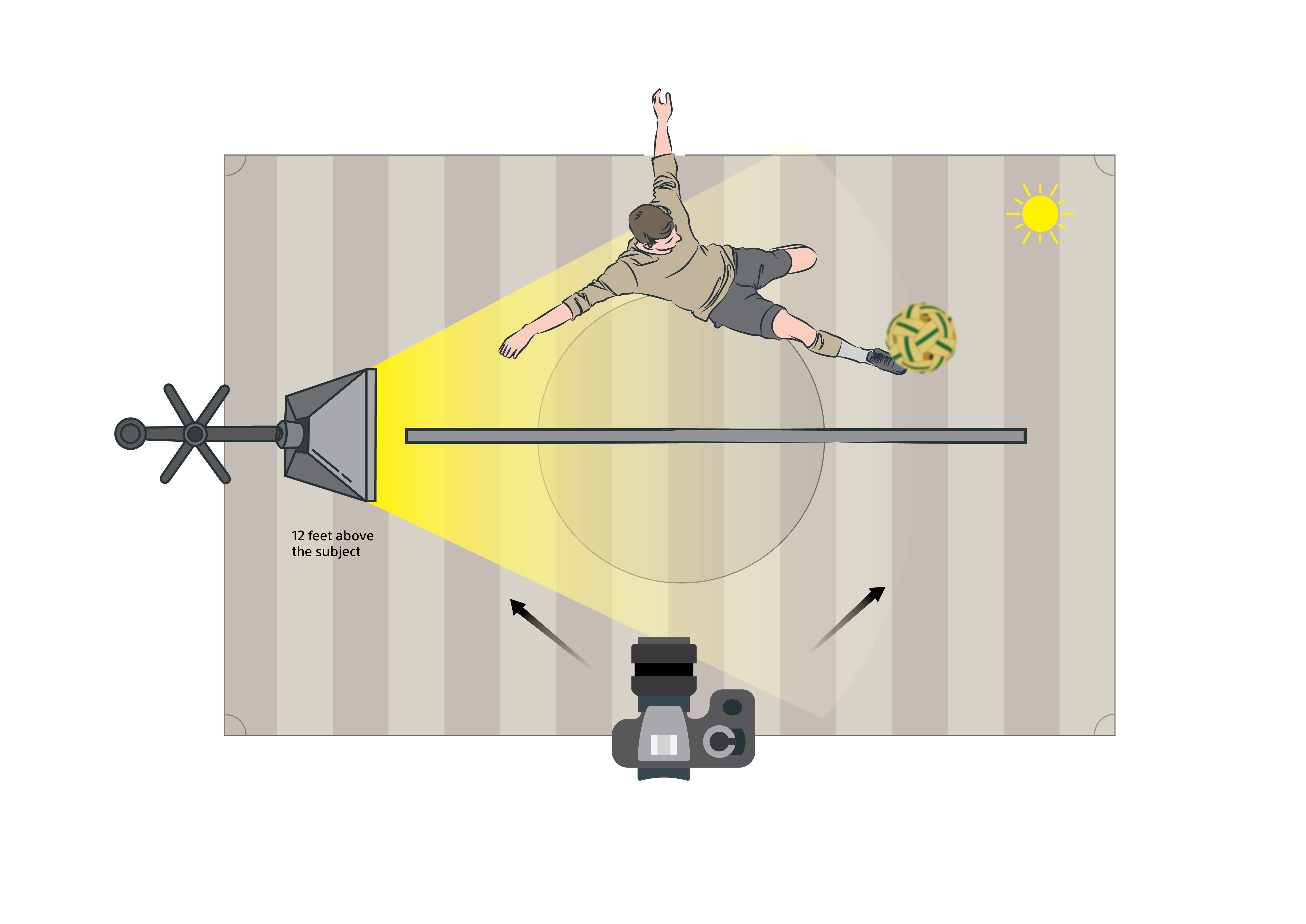 To do this, Jiggie had his lighting assistant positioned to the right of his camera, holding the light stand with the flash mounted about 12 feet above his subjects.