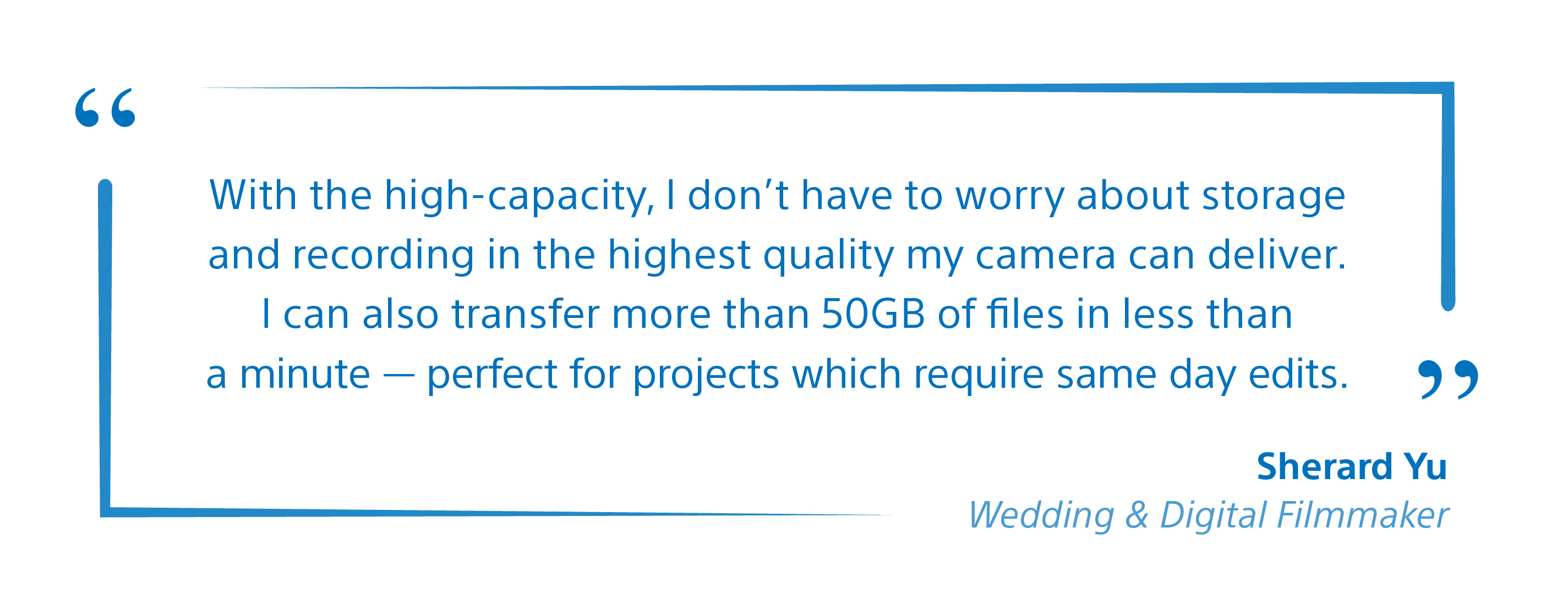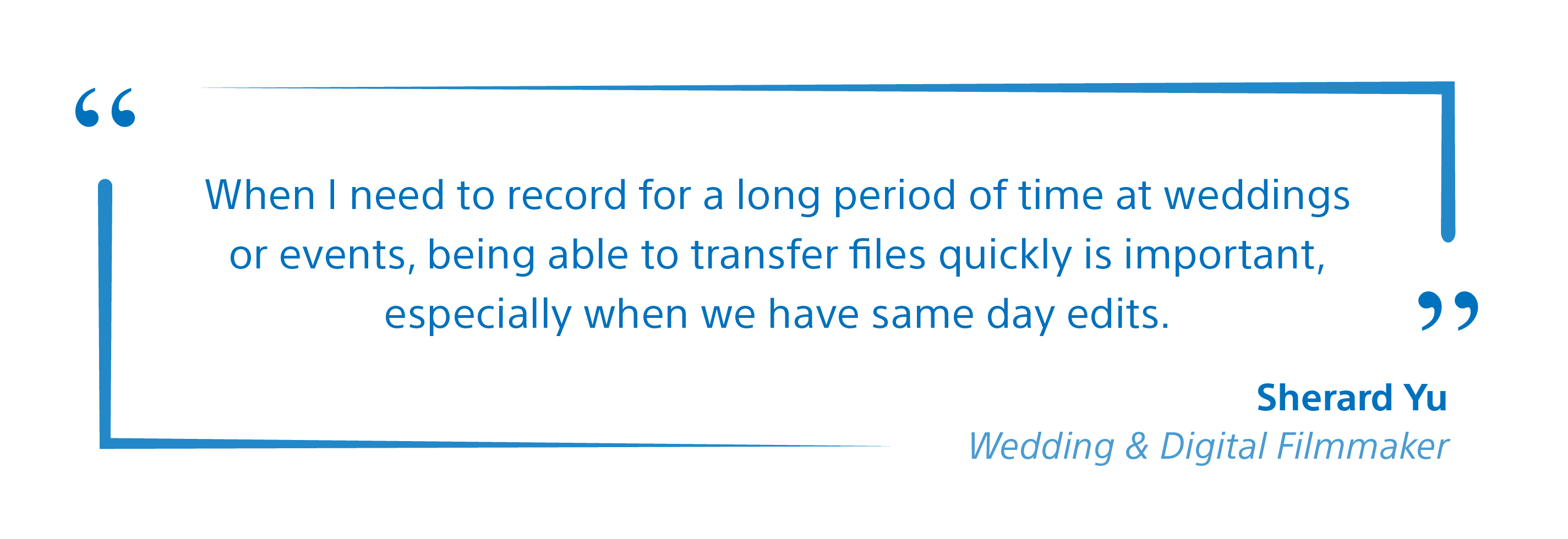 When you’re capturing entire ceremonies in 10-bit 4:2:2 4K, there’ll be no delays from switching cards and no dropped frames.