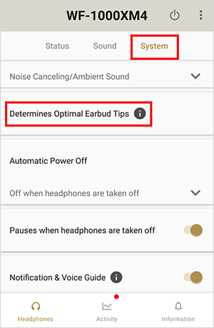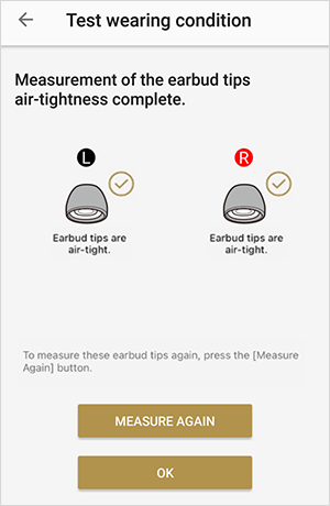Bạn có thể đo độ kín khít của nút tai nghe bằng chức năng "Xác định Nút tai nghe Tối ưu" trong ứng dụng Sony | Sound Connect (trước đây là Sony | Headphones Connect).